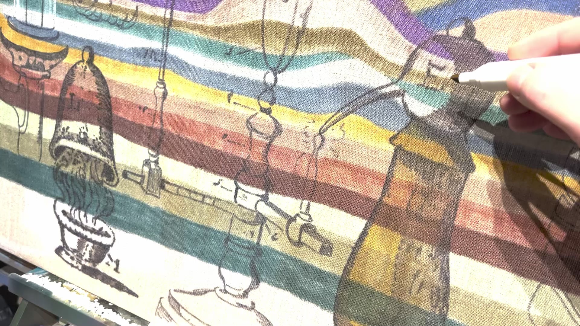 På væggen er monteret et maleri, som man - helt konkret - kan passere igennem ind til det andet rum.